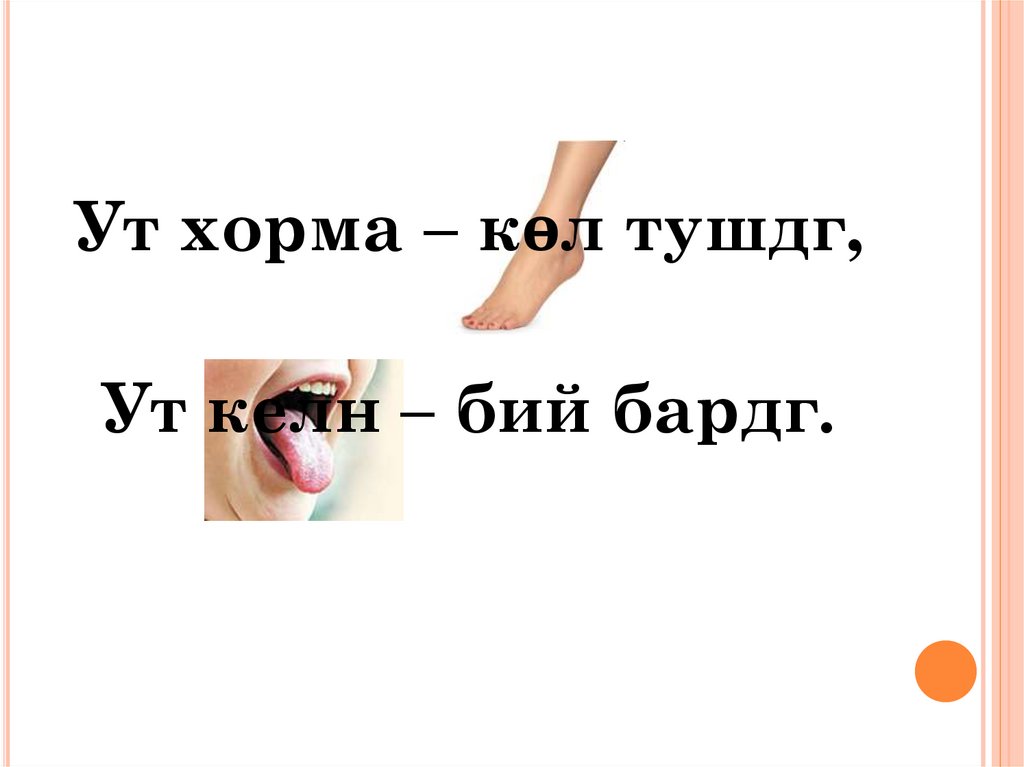 Ут хорма – көл тушдг,Ут келн – бий бардг.