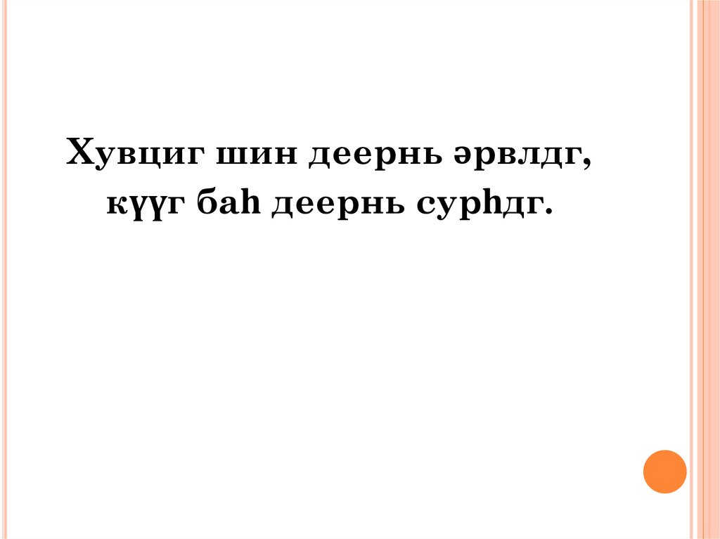 Хувциг шин деернь әрвлдг,күүг баһ деернь сурһдг.