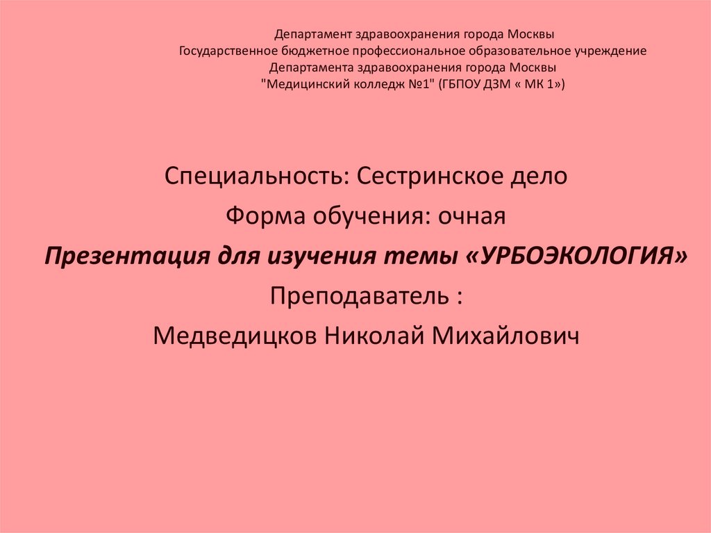 Департамент здравоохранения города МосквыГосударственное бюджетное профессиональное образовательное учреждение