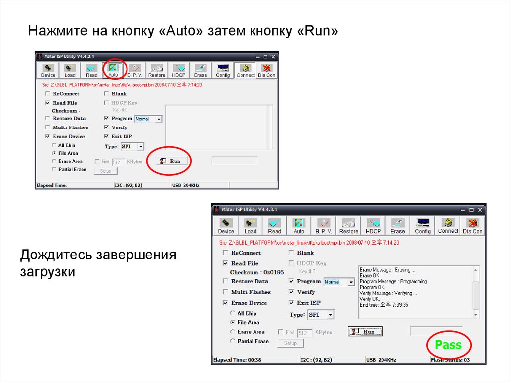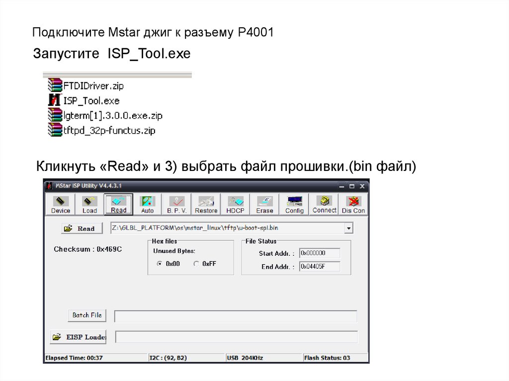Подключите Mstar джиг к разъему P4001Запустите ISP_Tool.exe