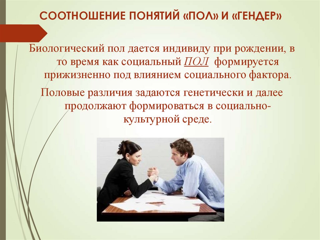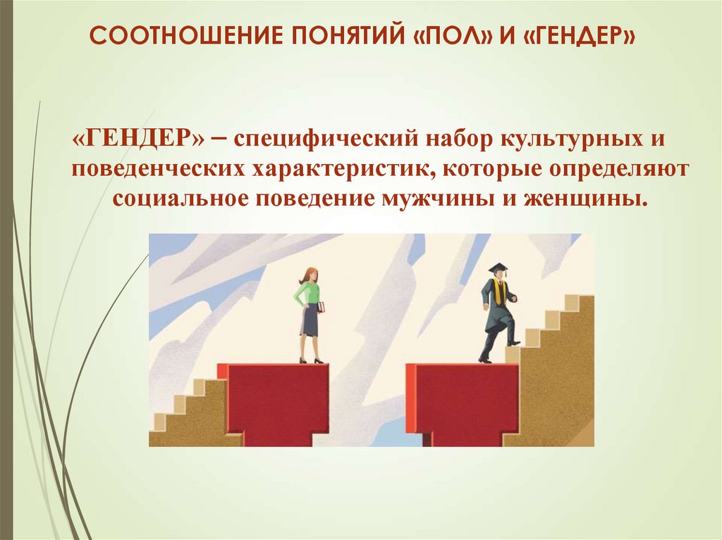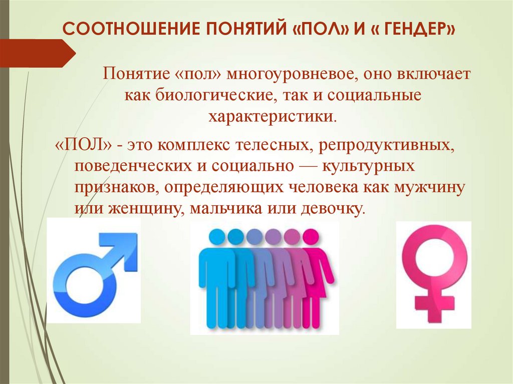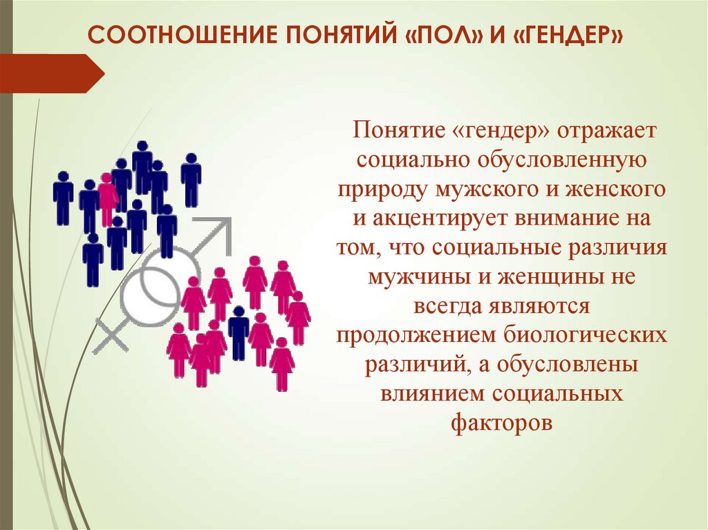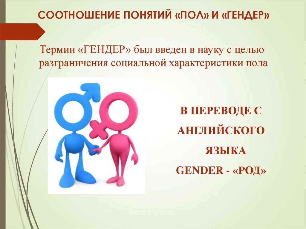 СООТНОШЕНИЕ ПОНЯТИЙ «ПОЛ» И «ГЕНДЕР»Понятие «гендер» отражает