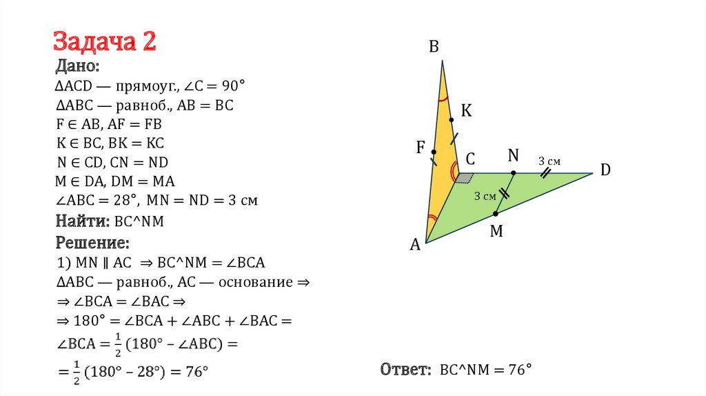 1) MN ∥ АС ⇒ BC^NM = ∠ВСА