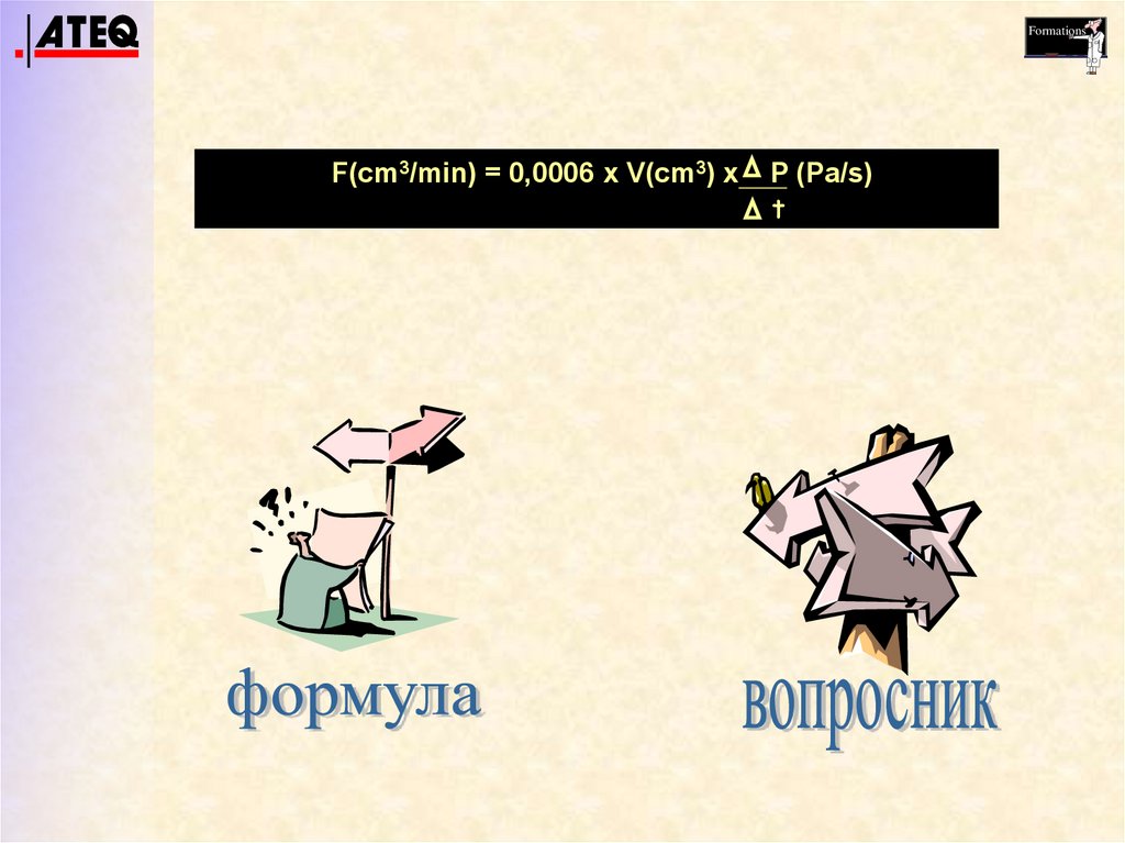 F(cm3/min) = 0,0006 x V(cm3) x ∆ P (Pa/s)