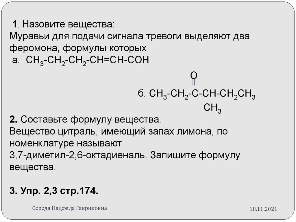 1. Назовите вещества:Муравьи для подачи сигнала тревоги выделяют два