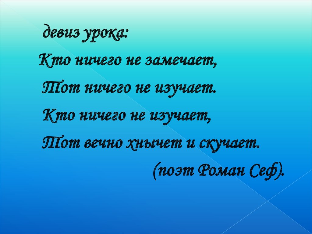девиз урока:Кто ничего не замечает,