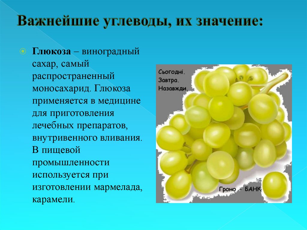 Глюкоза – виноградныйсахар, самый