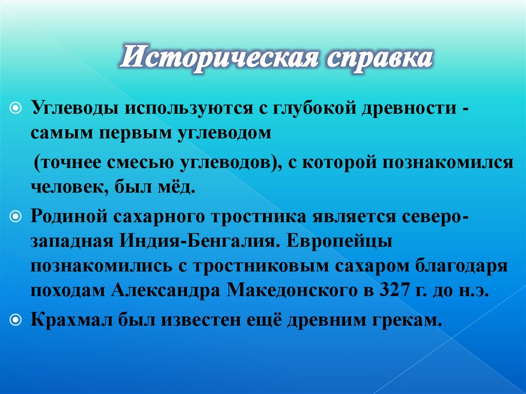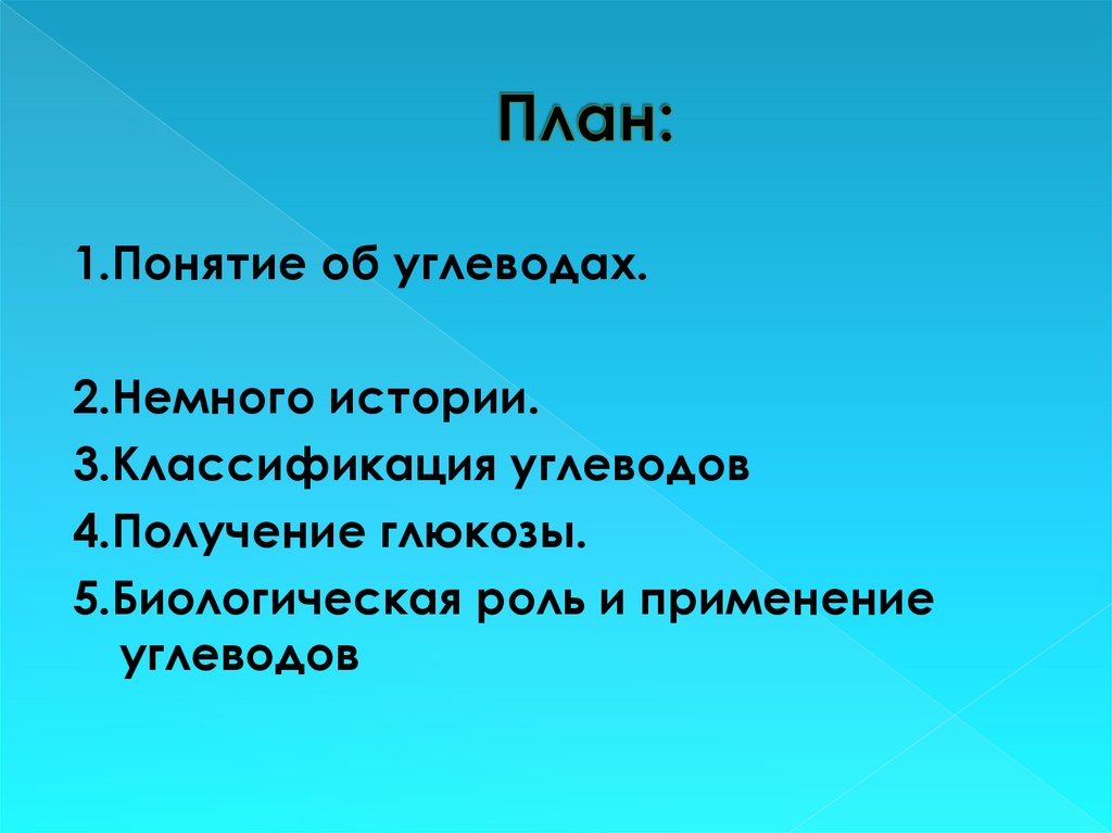 1.Понятие об углеводах.2.Немного истории.