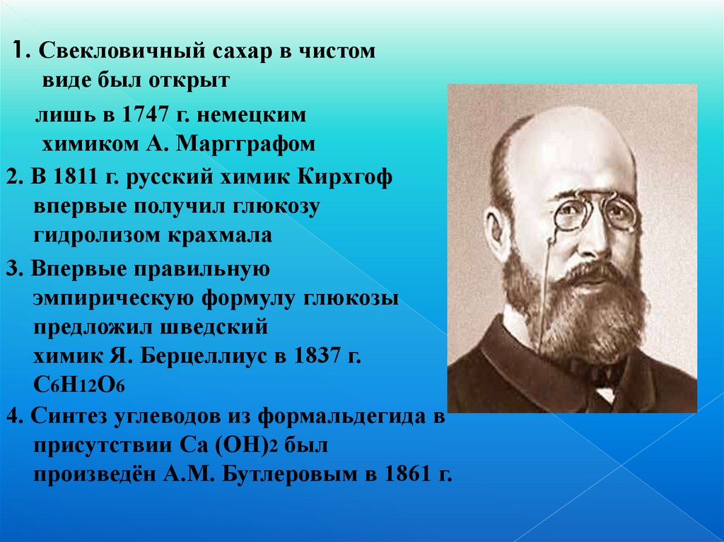 1. Свекловичный сахар в чистомвиде был открыт