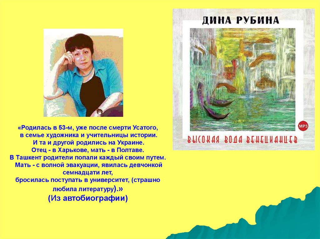 «Родилась в 53-м, уже после смерти Усатого,в семье художника и учительницы истории.