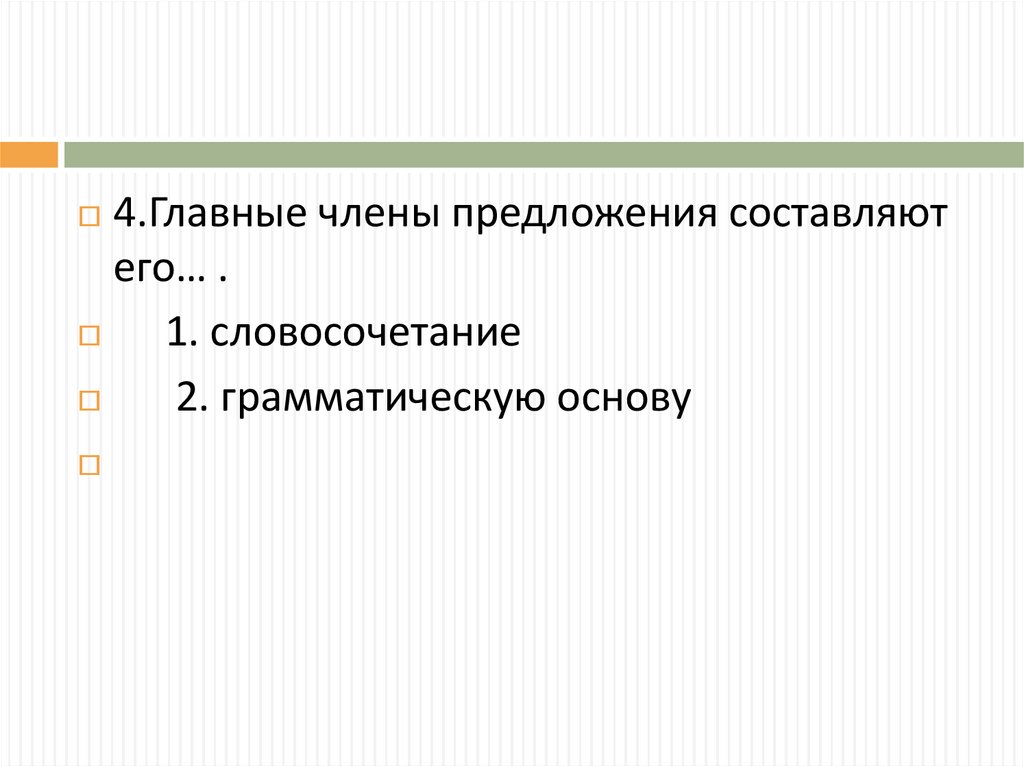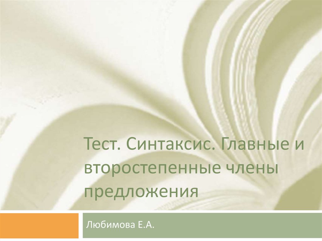 Тест. Синтаксис. Главные и второстепенные члены предложения