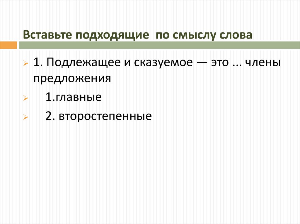 Вставьте подходящие по смыслу слова1. Подлежащее и сказуемое — это ... члены