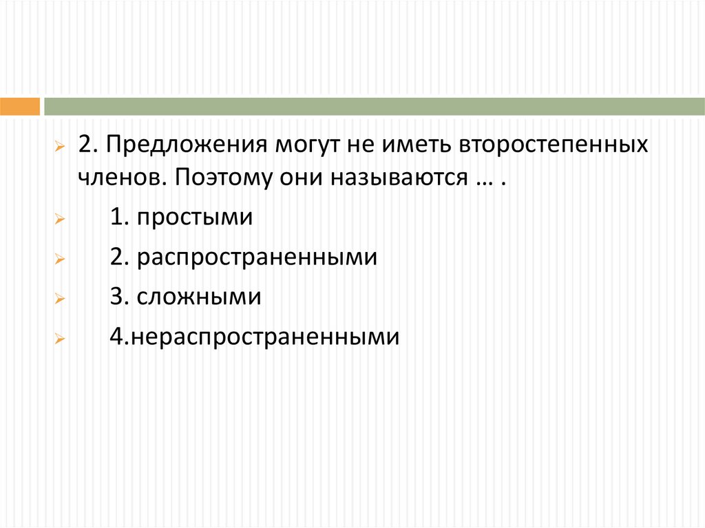 2. Предложения могут не иметь второстепенныхчленов. Поэтому они называются … .
