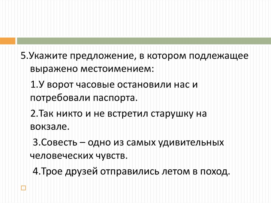 5.Укажите предложение, в котором подлежащеевыражено местоимением: