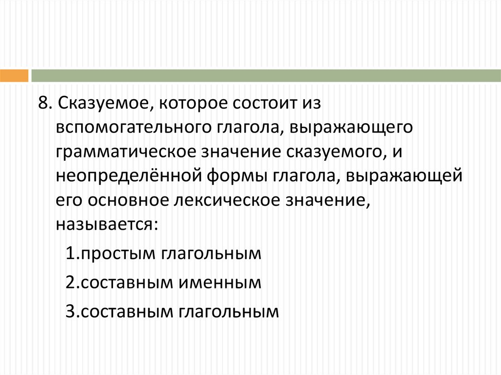 8. Сказуемое, которое состоит извспомогательного глагола, выражающего