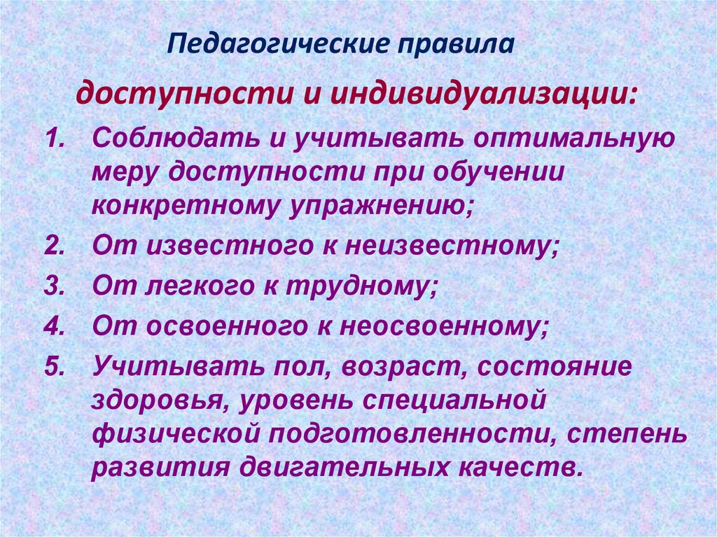 Педагогические правиладоступности и индивидуализации: