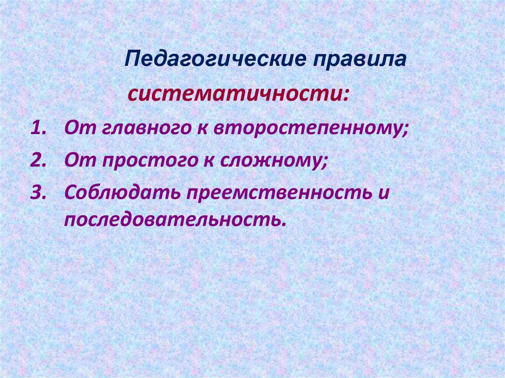 Педагогические правиласистематичности: