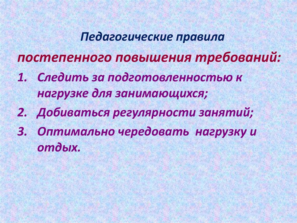 Педагогические правилапостепенного повышения требований: