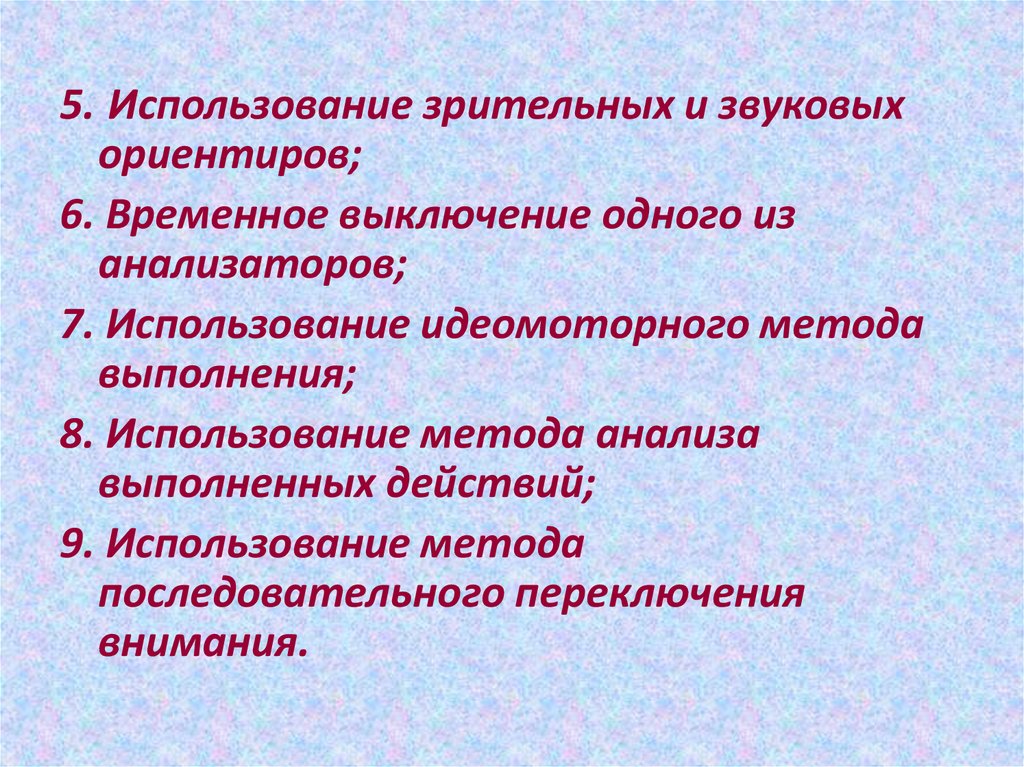 5. Использование зрительных и звуковыхориентиров;