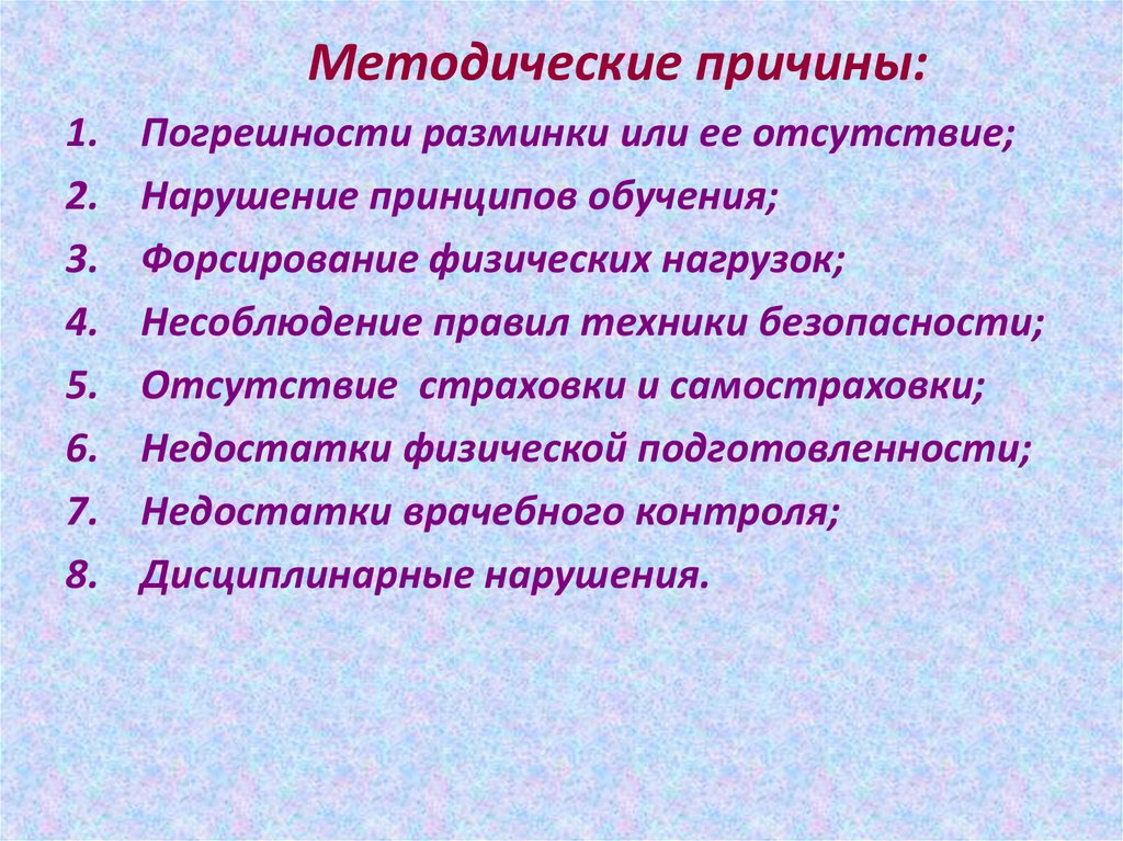 Методические причины:1.