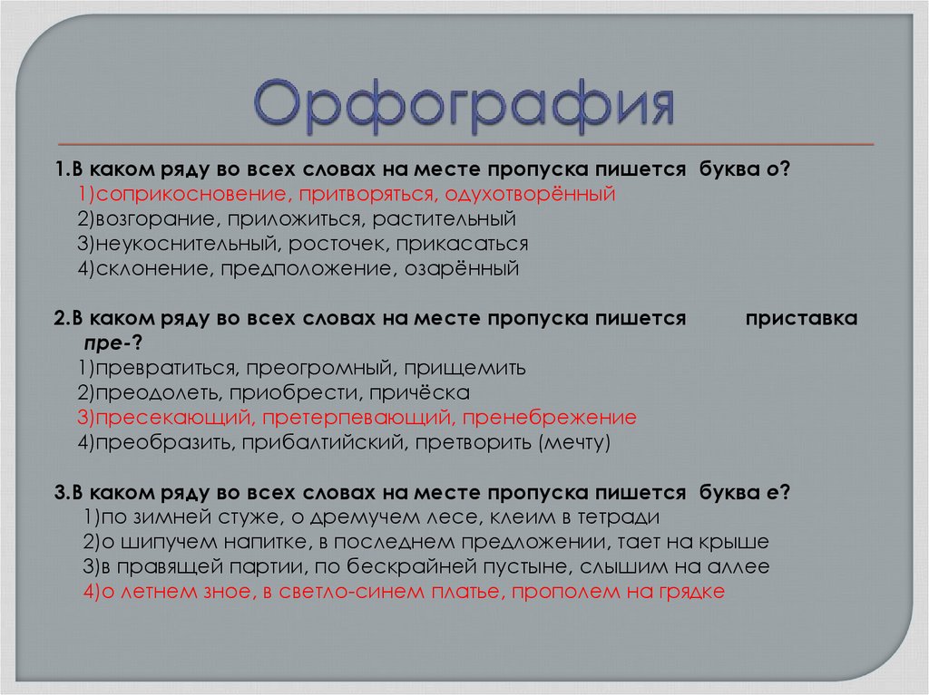 1.В каком ряду во всех словах на месте пропуска пишется буква о?1)соприкосновение, притворяться, одухотворённый