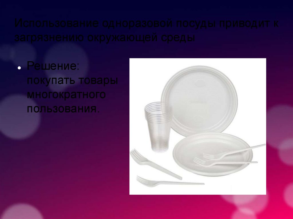 Использование одноразовой посуды приводит кзагрязнению окружающей среды