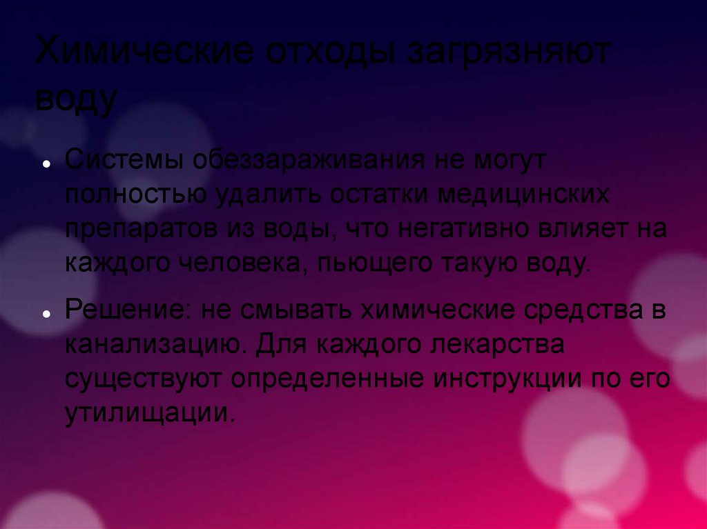 Химические отходы загрязняютводу