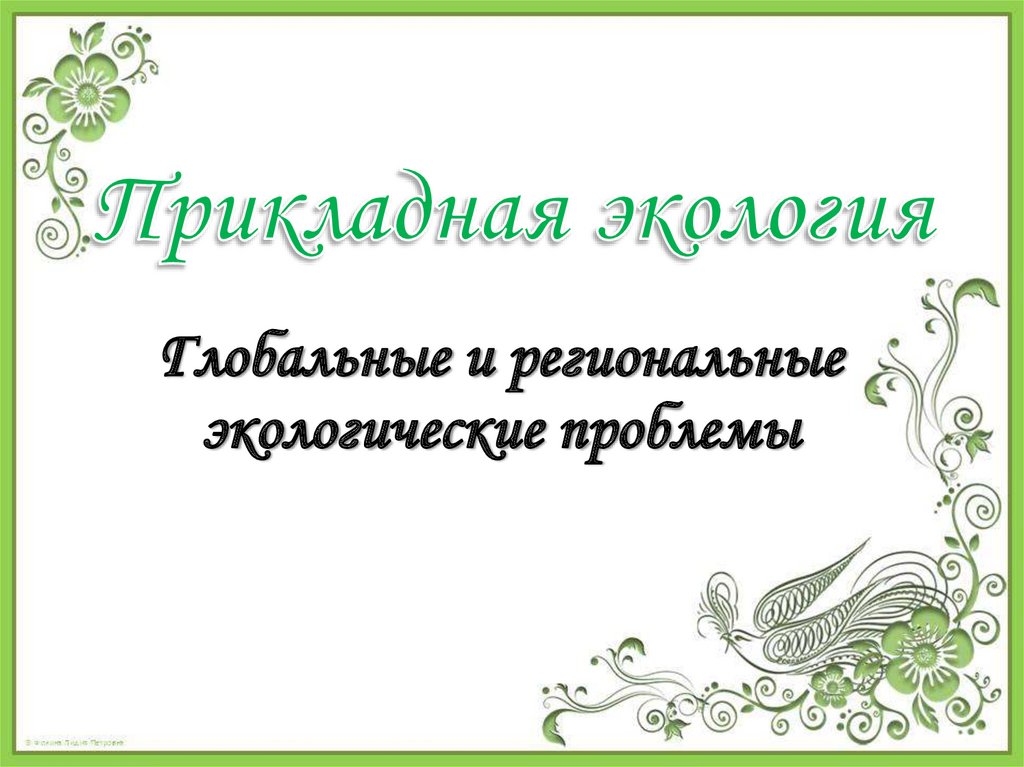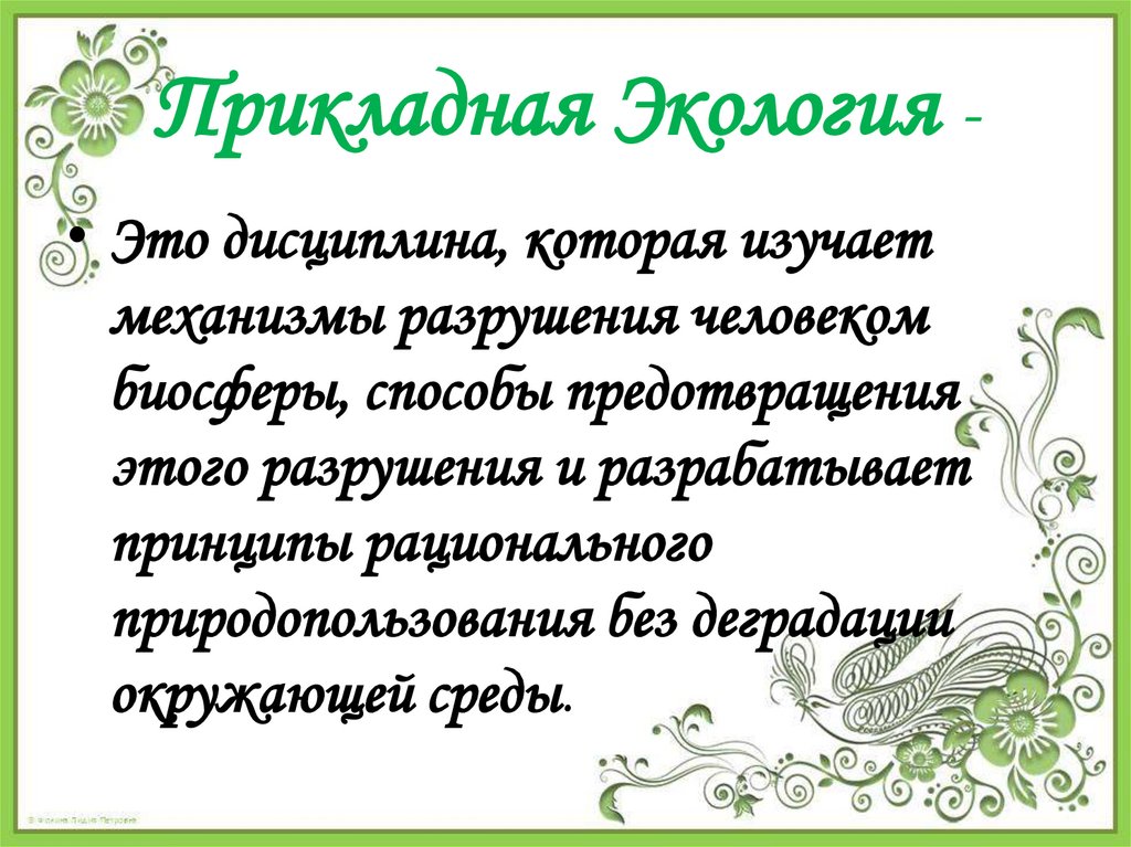 Прикладная Экология • Это дисциплина, которая изучаетмеханизмы разрушения человеком