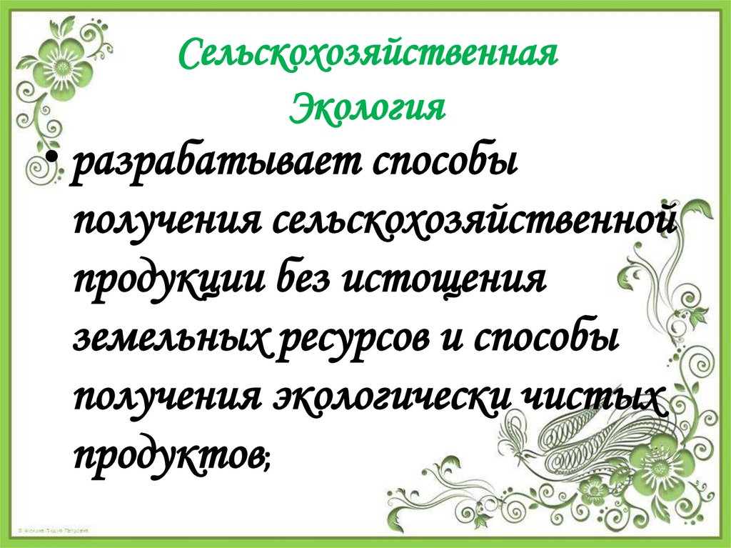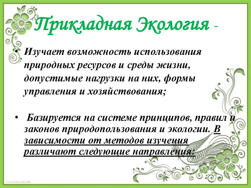 Прикладная Экология • Изучает возможность использованияприродных ресурсов и среды жизни,
