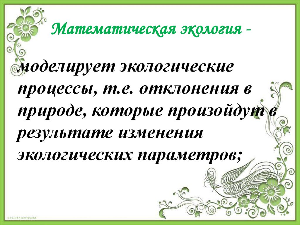 Математическая экология моделирует экологическиепроцессы, т.е. отклонения в
