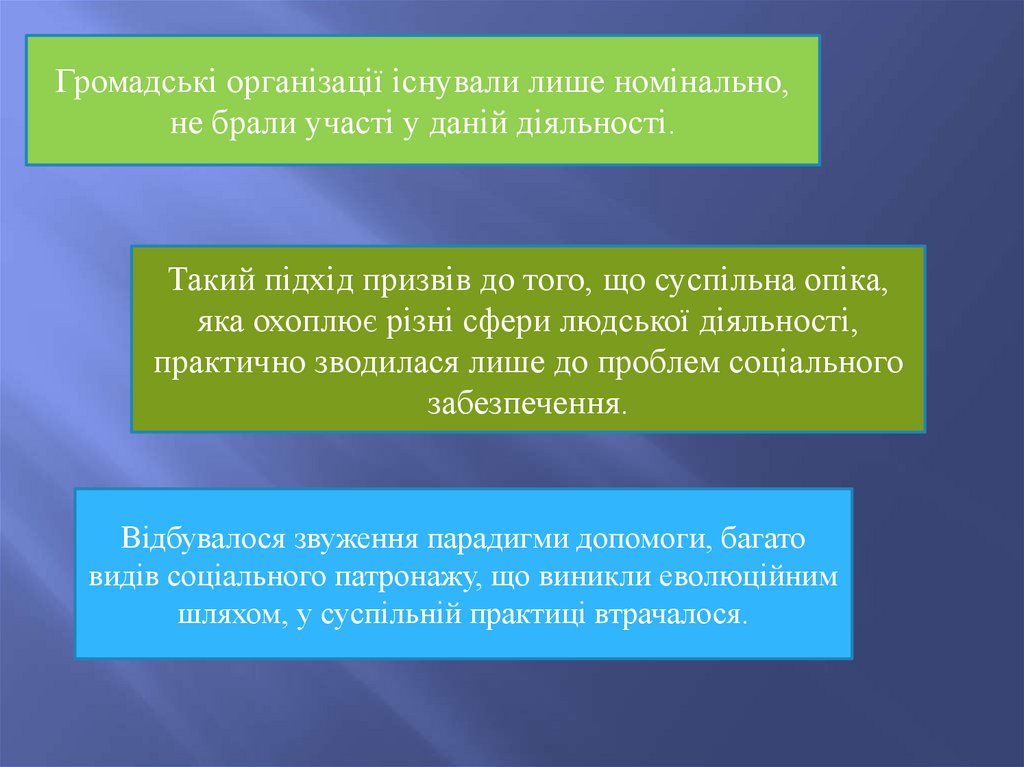 Такий підхід призвів до того, що суспільна опіка,