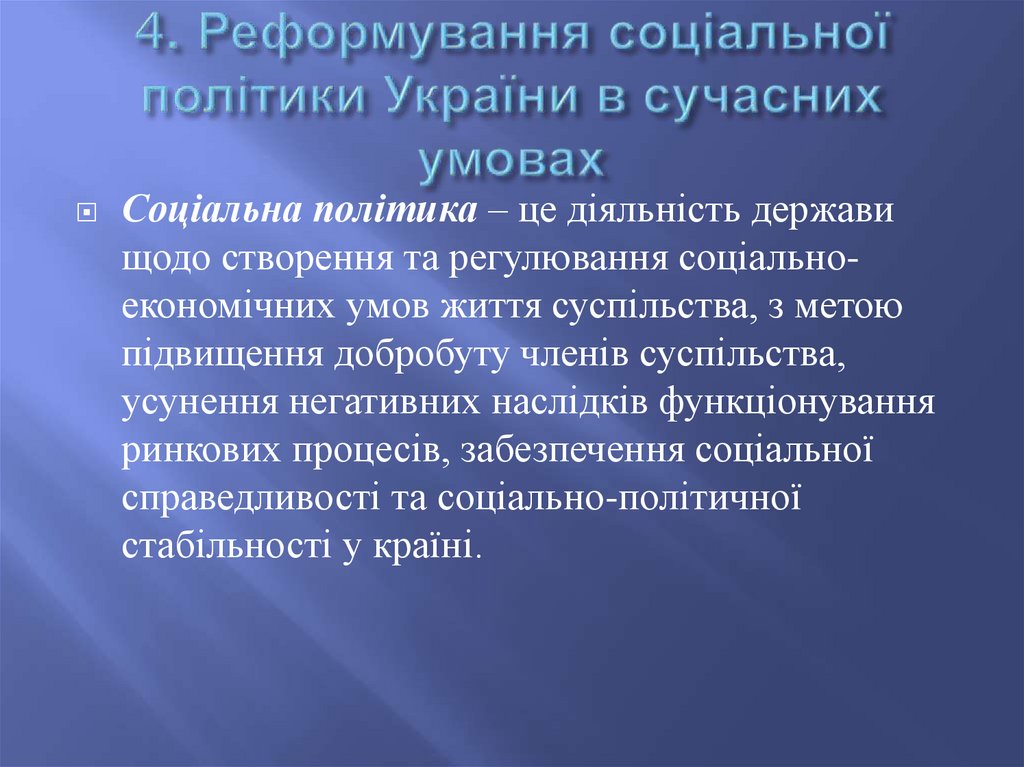 Реформування соціальної політики України в сучасних