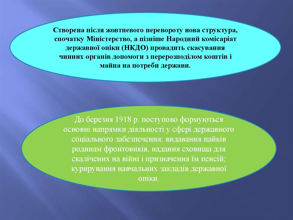 Створена після жовтневого перевороту нова структура,спочатку Міністерство, а пізніше Народний комісаріат