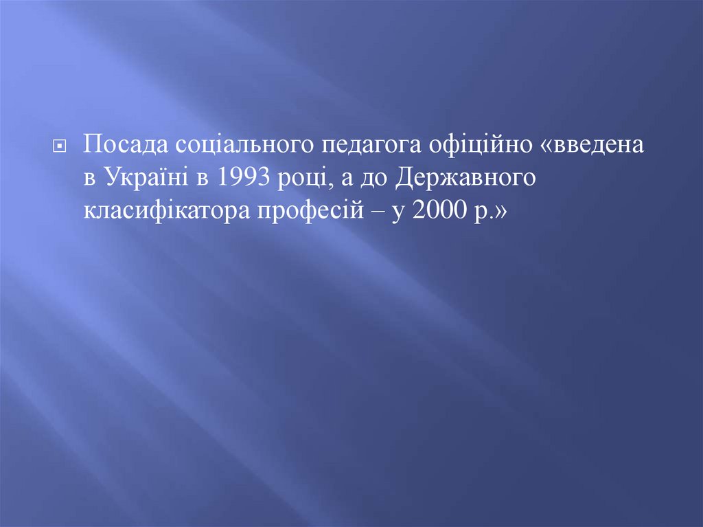 Посада соціального педагога офіційно «введенав Україні в 1993 році, а до Державного