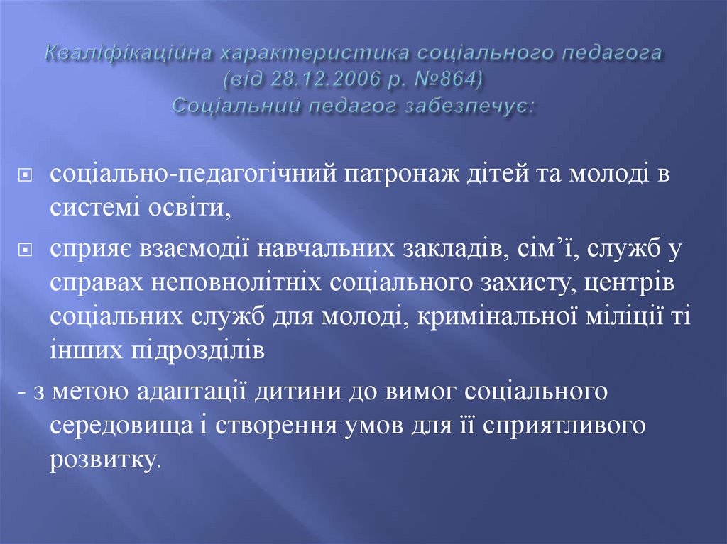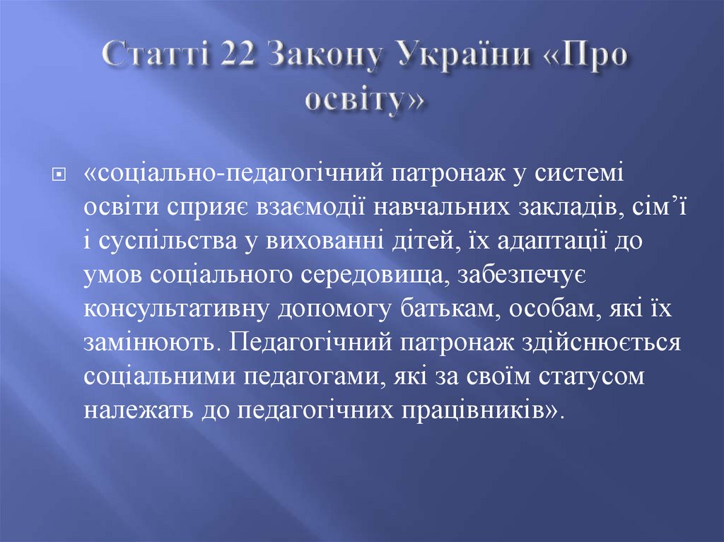 соціального педагога, соціального працівника.