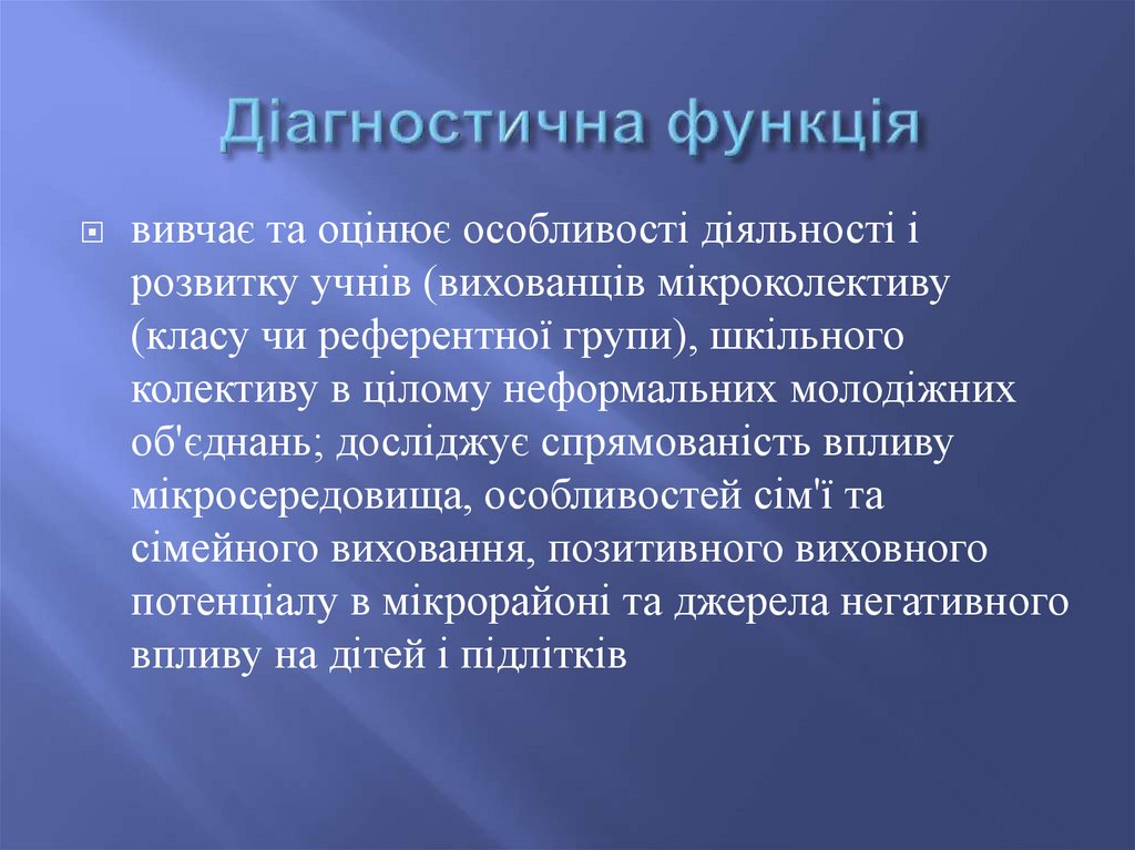 вивчає та оцінює особливості діяльності ірозвитку учнів (вихованців мікроколективу