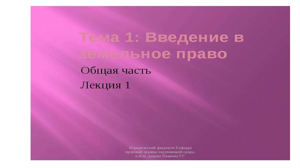 Введение в земельное право. Общая часть. Лекция 1