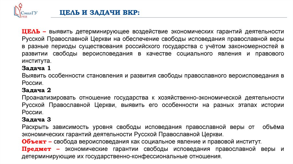 Предмет – экономические гарантии свободы исповедания православной веры и