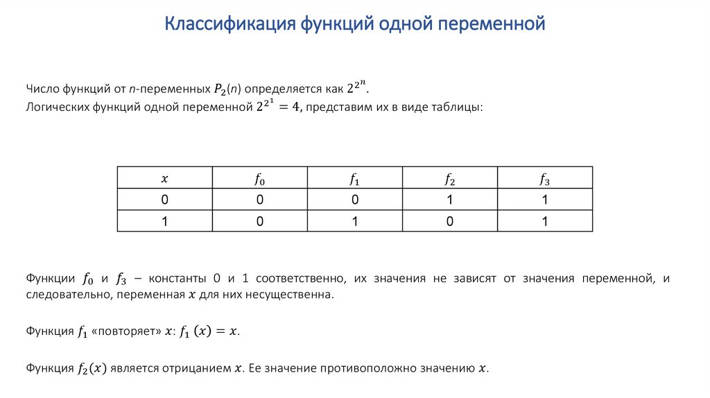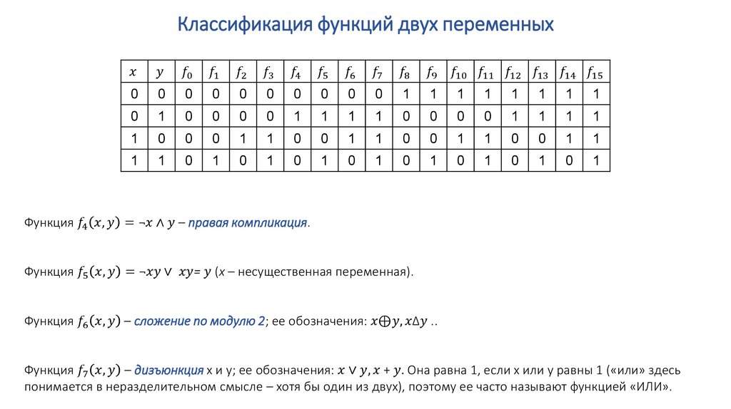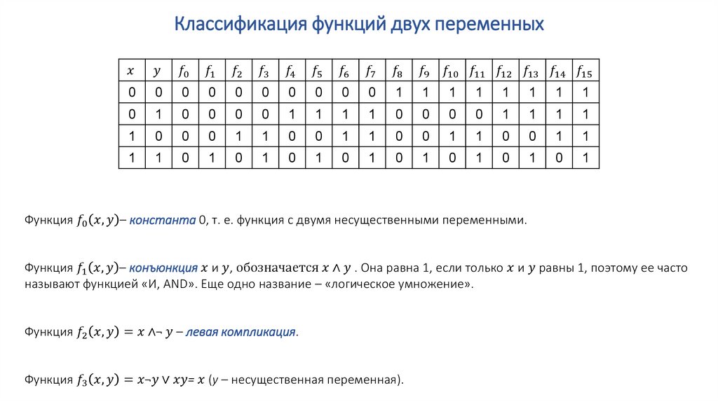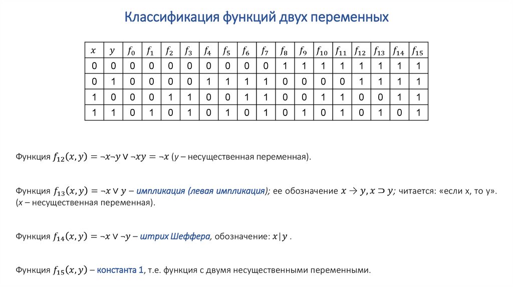 Элементарные функции алгебры логики