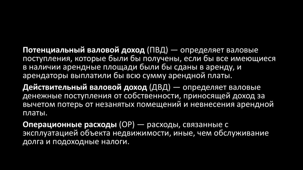 Потенциальный валовой доход (ПВД) — определяет валовыепоступления, которые были бы получены, если бы все имеющиеся