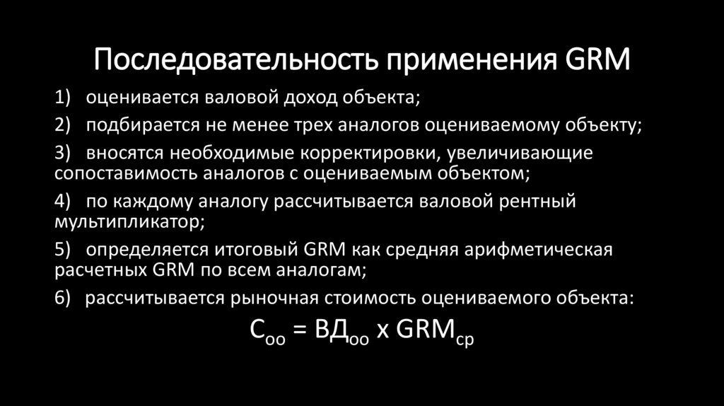Последовательность применения GRM1) оценивается валовой доход объекта;
