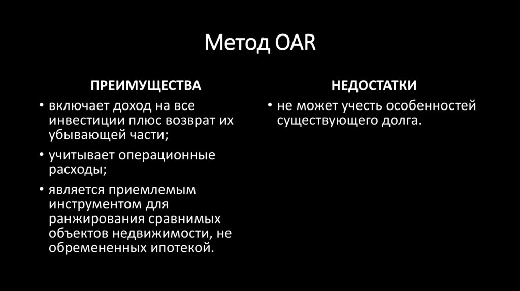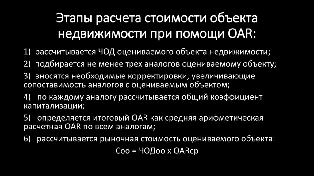 Этапы расчета стоимости объектанедвижимости при помощи OAR: