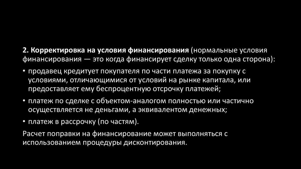 2. Корректировка на условия финансирования (нормальные условияфинансирования — это когда финансирует сделку только одна сторона):