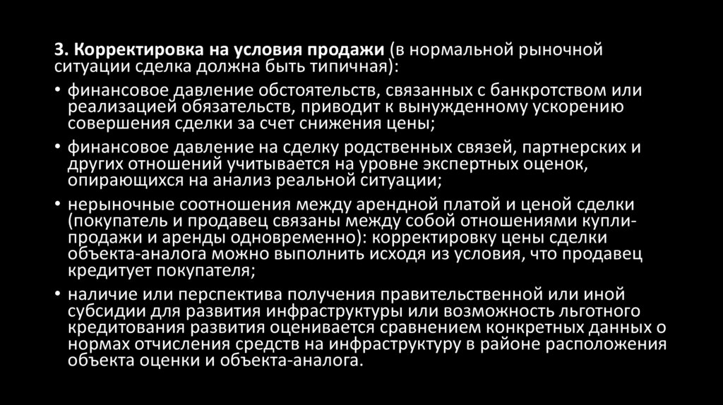 3. Корректировка на условия продажи (в нормальной рыночнойситуации сделка должна быть типичная):