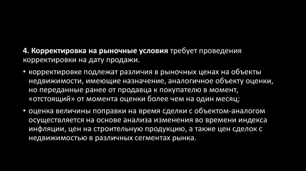 4. Корректировка на рыночные условия требует проведениякорректировки на дату продажи.