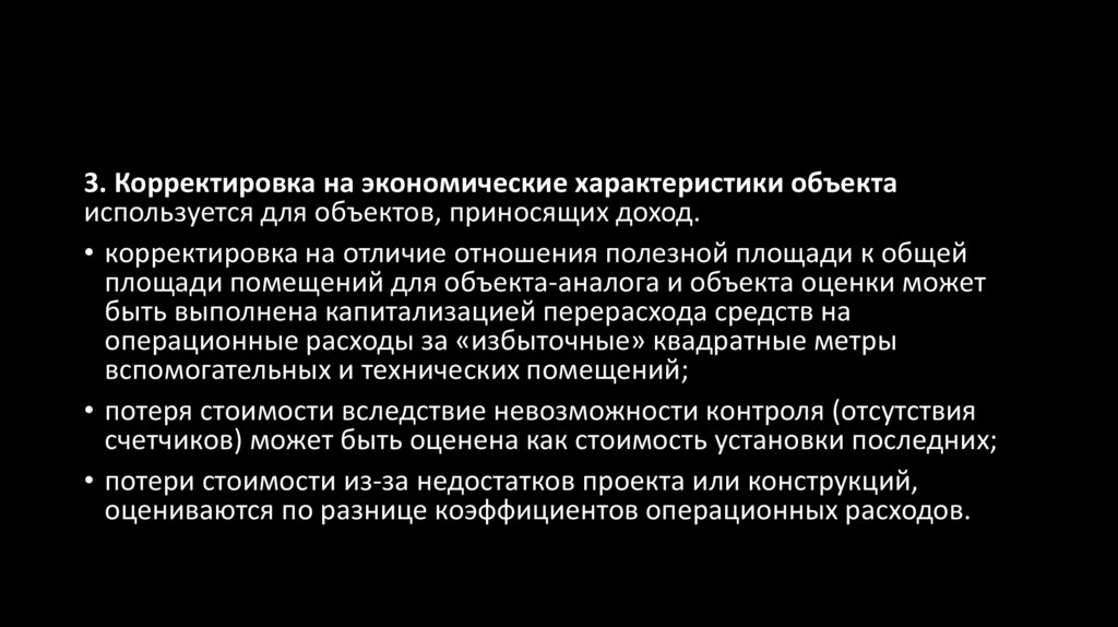 3. Корректировка на экономические характеристики объектаиспользуется для объектов, приносящих доход.