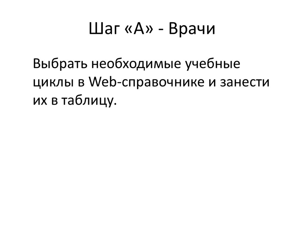Шаг «А» - ВрачиВыбрать необходимые учебные