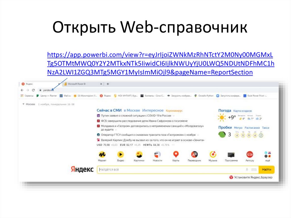 Открыть Web-справочникhttps://app.powerbi.com/view?r=eyJrIjoiZWNkMzRhNTctY2M0Ny00MGMxL