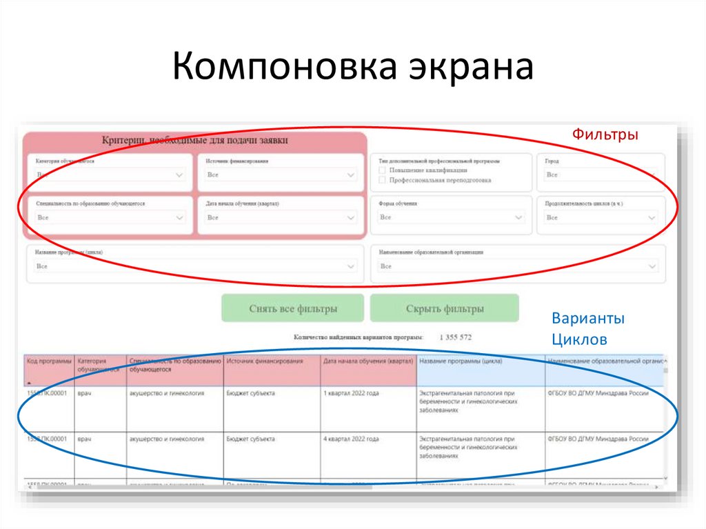 Компоновка экранаФильтры