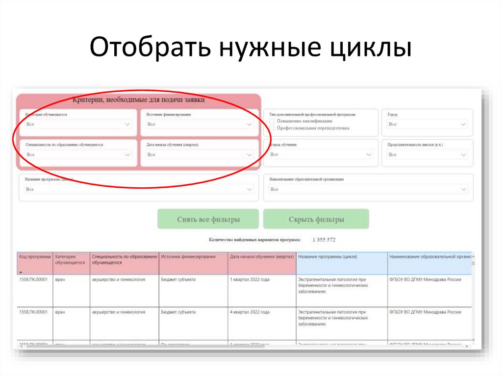 Отобрать нужные циклы19.