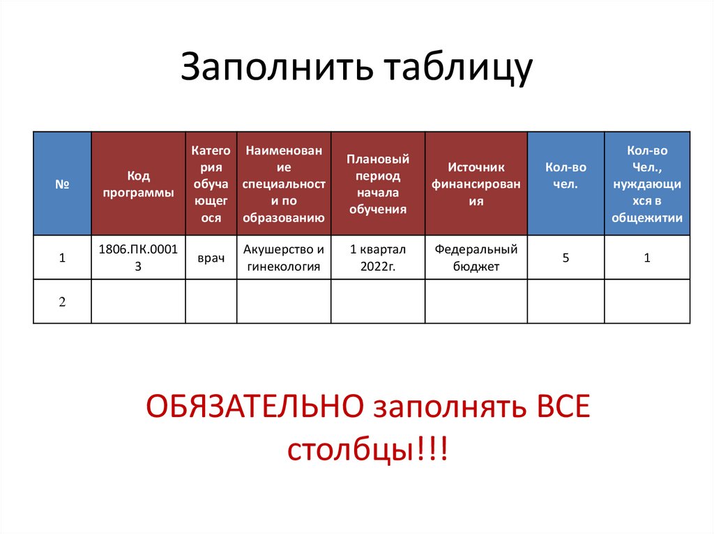 ОБЯЗАТЕЛЬНО заполнять ВСЕ